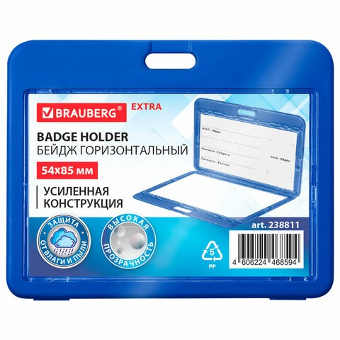 Горизонтальный бейдж BRAUBERG предназначен для хранения пропусков и карточек сотрудников, ID карт, проездных и банковских карт.