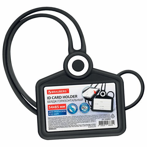 Горизонтальный силиконовый бейдж BRAUBERG для хранения пропусков и карточек сотрудников, ID-карт, проездных и банковских карт.
