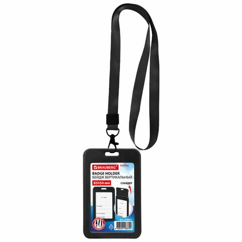 Вертикальный бейдж BRAUBERG для хранения тонких пропусков и карточек сотрудников, ID-карт, проездных и банковских карт.