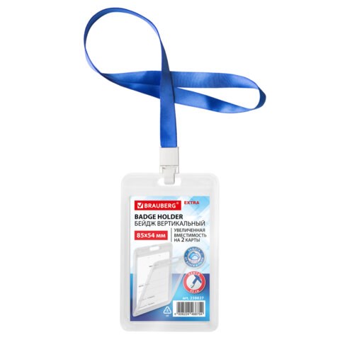Вертикальный бейдж BRAUBERG EXTRA для хранения пропусков и карточек сотрудников, ID-карт, проездных и банковских карт.