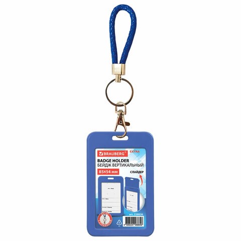 Вертикальный бейдж-слайдер с петлей и карабином BRAUBERG для хранения тонких пропусков и карточек сотрудников, ID-карт, проездных и банковских карт.