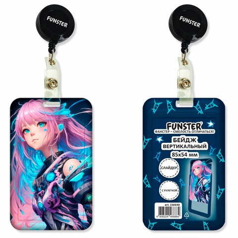 Вертикальный бейдж с рулеткой FUNSTER для хранения тонких пропусков, карточек, ID карт, проездных и банковских карт.
