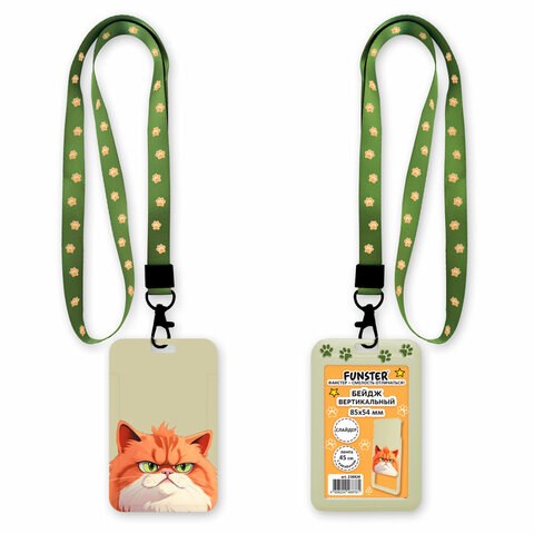 Вертикальный бейдж с лентой FUNSTER для хранения тонких пропусков, карточек, ID карт, проездных и банковских карт.