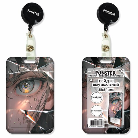 Вертикальный бейдж с рулеткой FUNSTER для хранения тонких пропусков, карточек, ID карт, проездных и банковских карт.