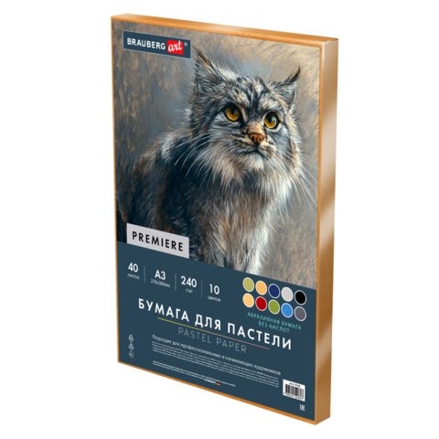 Бумага для пастели BRAUBERG предназначена для различных техник рисования. Позволяет создавать мягкие и детализированные текстуры на картинах, а при более плотной зарисовке пастель выглядит ярко и сочно.