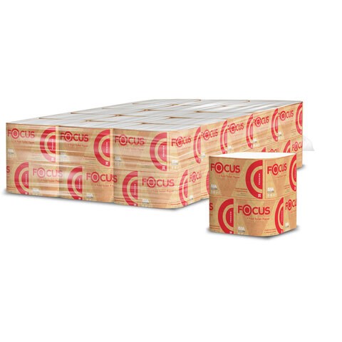 Листовая туалетная бумага FOCUS PREMIUM V-FOLD идеальное решение для туалетных комнат, расположенных в местах с большой проходимостью - в гостиницах, ресторанах, кафе, спортивных и развлекательных центрах, кинотеатрах.