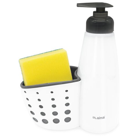 Дозатор для моющего средства + органайзер кухонный LAIMA HOME – ваш надежный помощник на кухне и в ванной. Вместительный дозатор для жидкого мыла или для моющего средства выполнен из качественного пластика и оснащен держателем для губки. Моющее средство подается при помощи стандартного помпового механизма.