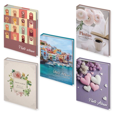 Обложка фотоальбома представлена в 5 дизайнах. Листы склеены в единый блок. Размер альбомы – 13х17 см.