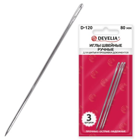 Иглы DEVELIA изготовлены из высококачественной нержавеющей стали, что обеспечивает им долговечность и устойчивость к коррозии. Они прочные и надежные. Идеально подходят для шитья, скрапбукинга, прошивки документов и других видов рукоделия. Благодаря острому кончику и прочному материалу они легко прошивают большинство типов тканей, бумагу и другие материалы.