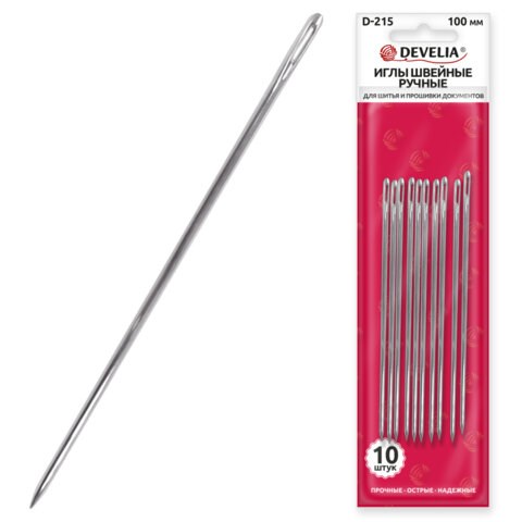 Иглы DEVELIA изготовлены из высококачественной нержавеющей стали, что обеспечивает им долговечность и устойчивость к коррозии. Они прочные и надежные. Идеально подходят для шитья, скрапбукинга, прошивки документов и других видов рукоделия. Благодаря острому кончику и прочному материалу они легко прошивают большинство типов тканей, бумагу и другие материалы.
