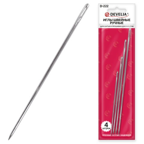 Иглы DEVELIA изготовлены из высококачественной нержавеющей стали, что обеспечивает им долговечность и устойчивость к коррозии. Они прочные и надежные. Идеально подходят для шитья, скрапбукинга, прошивки документов и других видов рукоделия. Благодаря острому кончику и прочному материалу они легко прошивают большинство типов тканей, бумагу и другие материалы. Набор состоит из 4 иглы различной длины, что дает возможность использовать его при любой необходимости.
