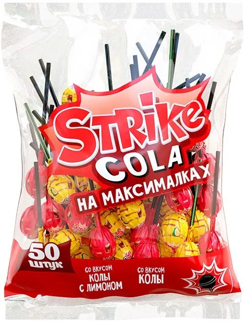 Вкус любимой колы в уникальном формате – карамели на палочке! Выбирай! – Кола с лимоном или леденец со вкусом любимого напитка. – Легко открыть: просто потяните за хвостик на обертке. В шоубоксе 50 леденцов