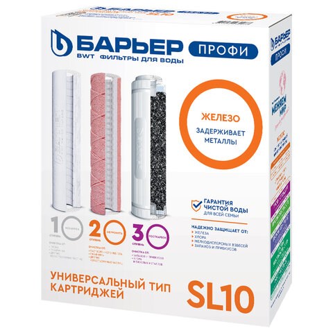 Сменные картриджи для проточного фильтра БАРЬЕР стандарта Slim Line 10 (SL10) подходят к любой проточной системе БАРЬЕР "ПРОФИ". Комплект сменных картриджей БАРЬЕР "ПРОФИ Железо" отлично справляется как с растворенным, так и коллоидным железом, и оставляет вам только чистую вкусную воду. Производительность – 2 л/мин, ресурс – 10 000 литров.