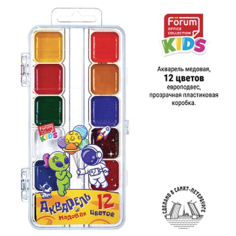 24 ярких насыщенных цвета отлично смешиваются между собой и позволяют создать множество оттенков, обеспечивают однородное окрашивание. Краски быстро высыхают и не портятся со временем. Нетоксичны и безопасны для детей. Выпускаются в пластиковом пенале с европодвесом, прозрачной крышкой, квадратной формой кювет и отделением для кисточки. Упаковка обладает компактными размерами и легким весом.