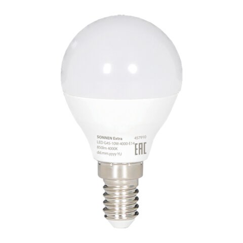 Светодиодная лампа SONNEN EXTRA компактного размера. Срок службы лампы составляет не менее 30000 часов, что примерно в 30 раз больше, чем у обычной лампы накаливания.