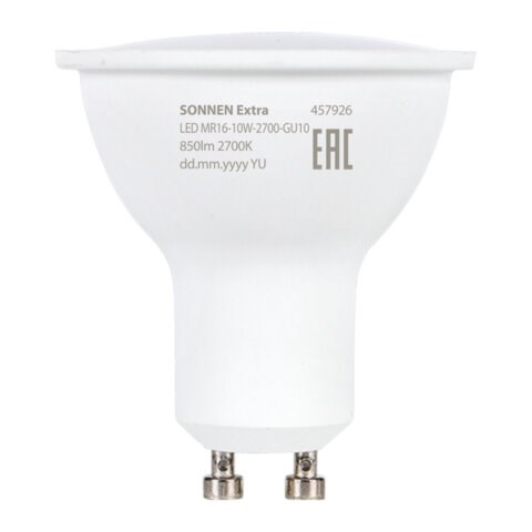 Светодиодная лампа SONNEN EXTRA компактного размера. Срок службы лампы составляет не менее 30000 часов, что примерно в 30 раз больше, чем у обычной лампы накаливания.