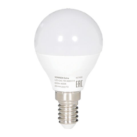 Светодиодная лампа SONNEN EXTRA компактного размера. Срок службы лампы составляет не менее 30000 часов, что примерно в 30 раз больше, чем у обычной лампы накаливания.