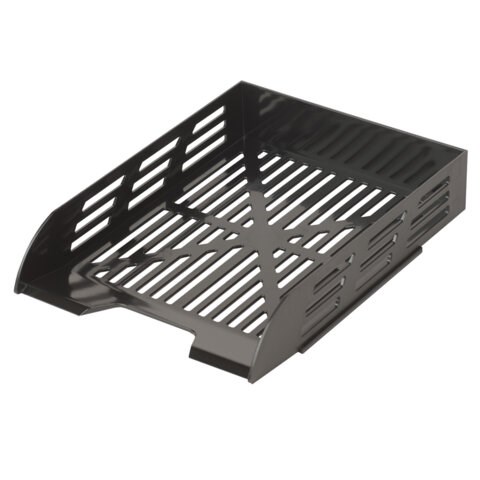 Изготовлен из прочного полистирола. Размер (ГхШхВ) – 330х245х65 мм. Обладает устойчивой конструкцией, благодаря которой удобен для хранения объемных документов и папок.