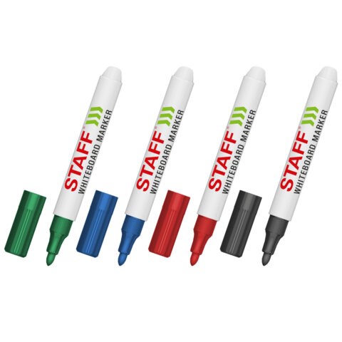 Набор маркеров STAFF "BASIC" WBM-200 – это ваш ключ к красочным и структурированным презентациям. Четыре классических цвета (черный, синий, красный, зеленый) помогут выделить главное, систематизировать информацию и визуализировать ее.