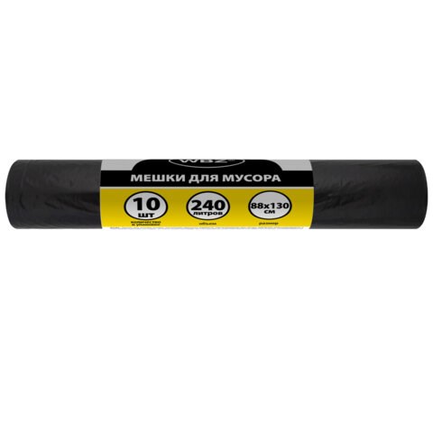 Изготовлены из полиэтилена высокого давления (ПВД) плотностью 50 микрон и имеют объем 240 литров. Размер мешка – 88х130 см (±5%). Поставляются в рулоне по 10 штук.