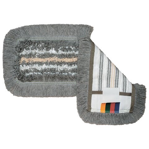 Моп ТриоПлюс - часть системы КомбиСпид Про. Высокоэффективная структура мопа: белые микроволоконные нити отлично отмывают, серые комбинированные нити - оттирают и удерживают грязь, бежевые нити из хлопка - впитывают много грязи и влаги., Дополнительный объем и плотность бахромы и петель для уборки в осенне-зимний период., Дополнительный объем нитей по периметру для подметания и уборки свободнолежащих загрязнений в труднодоступных местах., Благодаря петельчатой конструкции моп хорошо скользит по полу и собирает в петли загрязнения, удерживая их. Петли также облегчают разрыхление загрязнений., Плотная основа и окантовка, двойная прошивка увеличивают срок службы мопа., Надежный тафтинг: петли мопа держат форму, не скатываются и не распускаются в процессе уборки., Карманы плотно прилегают к держателю и имеют высокую устойчивость к деформации при соблюдении рекомендаций по использованию, стирке, сушке и хранению., Отлично отжимается., Подходит для всех держателей карманного типа, вертикальных и роликовых отжимов, а также для системы КомбиСпид Про., Крепление на ремнях и карманах., 4 цветная кодировка для исключения перекрестных загрязнений., Доступен в 2 самых популярных размерах.