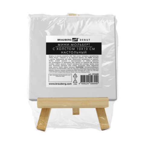 Размер мольберта - 15х8 см. Размер холста - 10х10 см. Набор упакован в термоусадку.