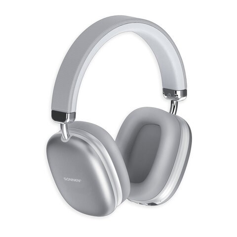 Наушники беспроводные накладные полноразмерные раздвижные мультирежимные, SONNEN HP-B12S, Bluetooth 5.4, серебристые, 514127