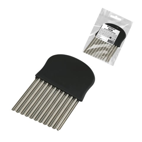 Нож для фигурной нарезки BOOMHOUSE представляют из себя двухсоставкую конструкцию из пластиковой ручки и широкого лезвие из нержавеющей стали с крупными волнами по всей поверхности, которые придают слайсам фактурный вид. Он идеально подходит для декоративной нарезки картофеля, моркови, яблока, сыра и других продуктов.