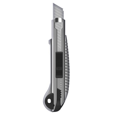 Благодаря своей обтекаемой форме нож удобно держать в руке. Пластиковый корпус гарантирует безопасность применения. Автофиксатор позволяет закрепить лезвие в нужном положении с помощью защелки. Для того, чтобы хранить и переносить инструмент было проще, в корпусе имеется небольшое отверстие. Нож усилен металлическими направляющими, которые надежно удерживают лезвие шириной 18 мм и позволяют выдерживать большую нагрузку.