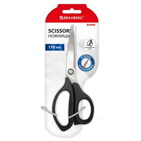 Ножницы BRAUBERG "BOMB" сочетают в себе максимальную функциональность и эстетичный внешний вид. Модель отлично подходит для резки бумаги, картона и прочих материалов.