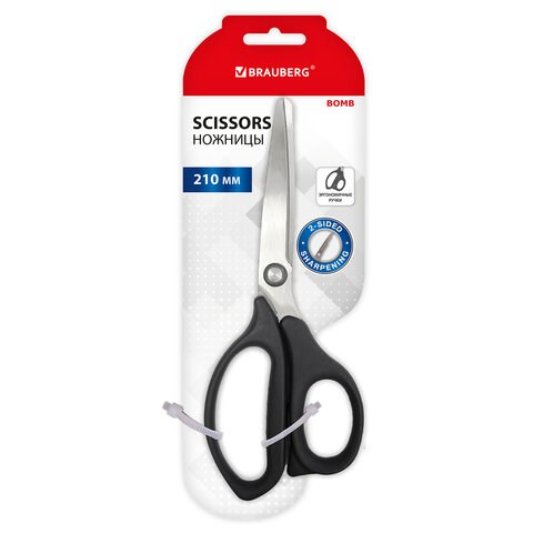 Примечательная особенность ножниц BRAUBERG "BOMB" - ручки из пластика повышенной прочности. Лезвия выполнены из нержавеющей стали и отличаются устойчивостью к негативным факторам внешней среды. Двусторонняя заточка делает лезвия максимально острыми: даже в условиях интенсивной эксплуатации режущие свойства не вызывают нареканий. Общая длина инструмента – 210 мм.