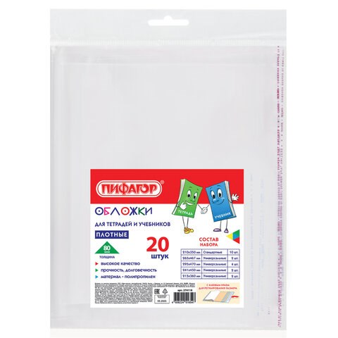 Прозрачные обложки ПИФАГОР отлично предохраняют тетради и учебники от внешних воздействий, тем самым увеличивая срок их службы и сохраняя прекрасный внешний вид. Предназначены для тетрадей и учебников.