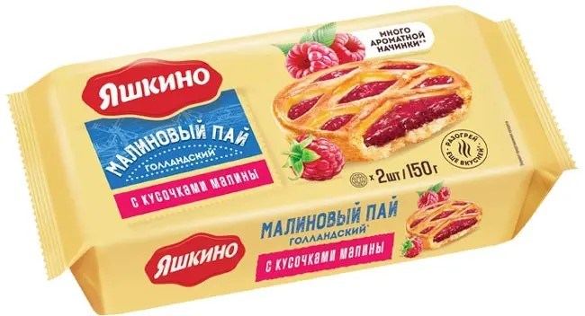 Сахар, мука пшеничная хлебопекарная, яблочное пюре, масла растительные, ягоды быстрозамороженные: малина грис; вода питьевая, патока, маргарин (рафинированные дезодорированные растительные масла (пальмовое, модифицированные пальмовые, кокосовое, подсолнечное), вода, эмульгаторы (Е471, Е433, соевый лецитин), консерванты (Е200, Е211), ароматизатор, краситель (Е160а), регулятор кислотности (Е330)), мальтодекстрин, агент влагоудерживающий: глицерин, глюкозно-фруктозный сироп, продукты яичные, желирующий агент: пектины; молоко сухое цельное, красители: Е160а, кармины; разрыхлитель: гидрокарбонат натрия; ароматизаторы, комплексная пищевая добавка (эмульгаторы: Е475, Е433), регулятор кислотности: лимонная кислота; соль, разрыхлитель Е450(i), стабилизаторы: цитраты натрия, цитраты кальция; консервант: сорбат калия. Возможно наличие диоксида серы. Внимание: может содержать следы плодоножек.