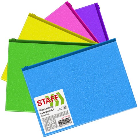 Папка-конверт на молнии STAFF идеально подойдет для хранения и транспортировки документов.