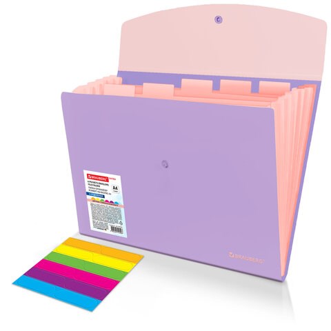 Папка-органайзер изготовлена из качественного пластика привлекательного лилового цвета толщиной 0,5 мм с фактурой "песок", снабжена разделителями персикового цвета.