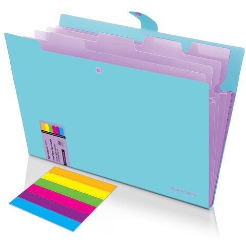 Имеет 5 отделений с ярлыками на разделителях и яркими стикерами (в комплекте), что существенно упрощает процесс поиска нужного документа и позволяет структурировать информацию. Удобный и надежный замок-кнопка дает возможность быстро открывать и закрывать папку, не позволяя содержимому выпасть, и защищает его от влаги, пыли и механических повреждений.