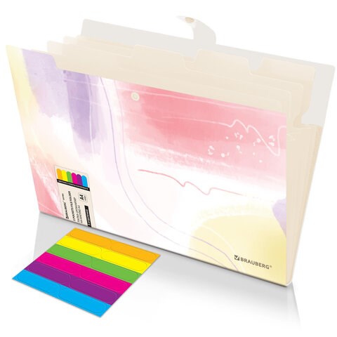 Имеет 5 отделений с ярлыками на разделителях и яркими стикерами (в комплекте), что существенно упрощает процесс поиска нужного документа и позволяет структурировать информацию. Удобный и надежный замок-кнопка дает возможность быстро открывать и закрывать папку, не позволяя содержимому выпасть, и защищает его от влаги, пыли и механических повреждений.