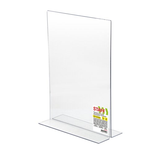 Подставка изготовлена из прозрачного ПЭТ. Предназначена для настольного вертикального размещения. Формат А4 и меньше. Максимальная высота вставляемого листа 297 мм, максимальная ширина вставляемого листа 210 мм.