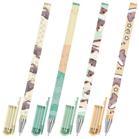 Ручка представлена в дизайнах ассорти с милыми котами, которые привлекают внимание своим очаровательным видом. Круглый корпус ручки имеет покрытие SOFT TOUCH, благодаря чему мягко ложится в руке при письме. Стандартный наконечник с диаметром 0,7 мм создает аккуратную линию письма, равную 0,35 мм. Синий цвет чернил делает ручку универсальной как для создания конспектов в школе, так и для ведения записей в офисе.