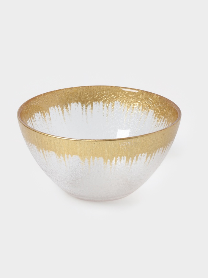 Стеклянный салатник станет ярким акцентом в любой сервировке. Золотистый оттенок придает изделию праздничный вид, но при этом сохраняет универсальность в использовании.