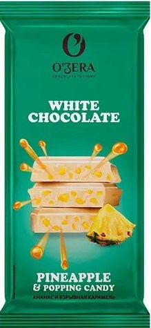 Нежнейший шоколад цвета слоновой кости. С кусочками натурального ананаса! - С какао-маслом. - С криспами – высушенный ананас. - С взрывной карамелью. - «Гормон счастья» за считанные минуты!