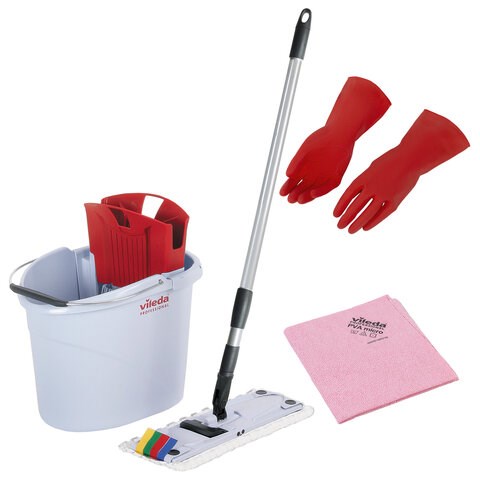 Компактный набор с красной цветовой кодировкой для уборки ежедневных загрязнений в санузлах., Эффективная уборка с помощью микроволокна., Легкая, компактная и прочная система., Высококачественные, износостойкие и прочные материалы продолжительного срока службы., Все элементы системы полностью совместимы между собой., Цветовая кодировка отжима и мопа для маркировки инвентаря и исключения перекрестных загрязнений., В комплекте универсальная салфетка для любых поверхностей в санузле, включая зеркала и стекла, а также защитные перчатки из латекса., Гарантия качества от немецкого бренда.