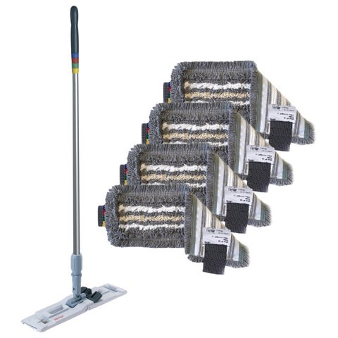 Продуманная комплектация для уборки самых типовых загрязнений напольных покрытий., Только хиты продаж по выгодной цене., Годовой запас мопов позволяет экономить время на их поиск, заказ и доставку., Цветовая кодировка для исключения перекрестных загрязнений., Эффективная очистка поверхностей с помощью микроволокна., Высококачественный, износостойкий и прочный пластик и металл для максимально долгого срока службы., Буклет с краткой информацией по применению набора в комплекте., Гарантия качества от европейского производителя.