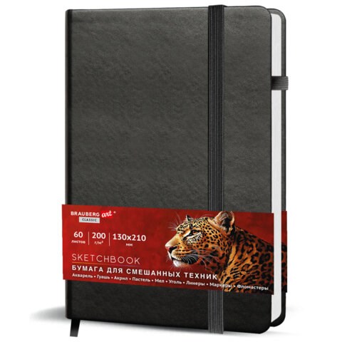 Скетчбук BRAUBERG ART "CLASSIC" для смешанных техник. Внутренний блок – специальная художественная бумага белого цвета. Подходит для работы с широким спектром графических материалов (акварель, гуашь, акрил, маркеры, фломастеры и прочие).