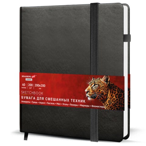 Скетчбук BRAUBERG ART "CLASSIC" для смешанных техник. Внутренний блок – специальная художественная бумага белого цвета. Подходит для работы с широким спектром графических материалов (акварель, гуашь, акрил, маркеры, фломастеры и прочие).