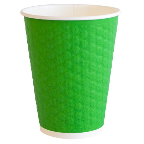 Двухслойный бумажный стакан объемом 300 мл в эко-зеленом цвете с конгревом "соты". Изготовлен из двух слоев пищевого картона высокой плотности 250+15/250 г/м2 с биоразлагаемым полимерным покрытием. Воздушная прослойка между слоями обеспечивает продвинутую термоизоляцию: напитки до +95 °C остаются горячими, а внешняя стенка сохраняет комфортную температуру для рук.
