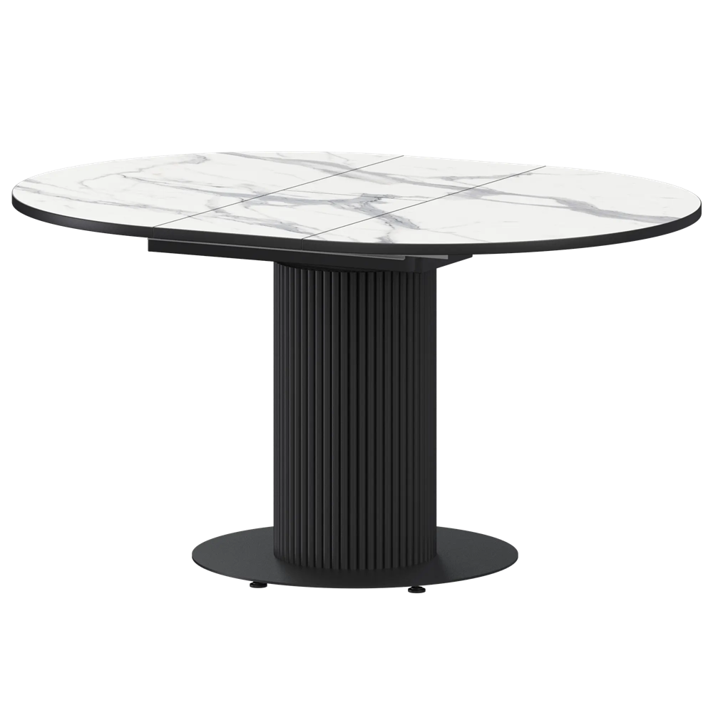 Стол раздвижной Амур Обеденные столы в пластике Амур 1000+300 (Н-3783) Мрамор Белый/Черный муар 1000x1000x750 Ширина 1000мм +300мм вставка