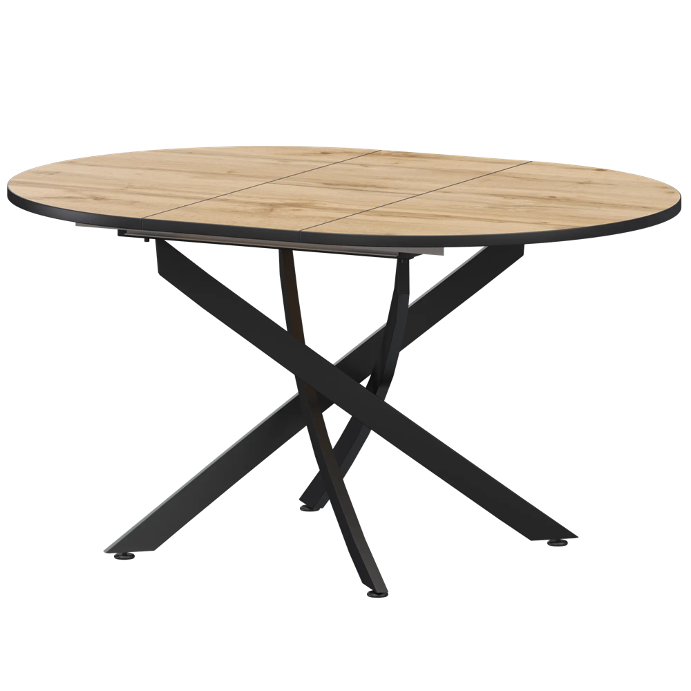 Стол раздвижной Геометрия 2 Обеденные столы в пластике Геометрия 2 1000+300 (Н-3783) Дуб Вотан/Черный муар 1000x1000x750 Ширина 1000мм +300мм вставка