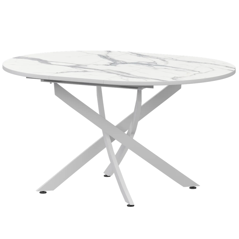 Стол раздвижной Геометрия 2 Обеденные столы в пластике Геометрия 2 1000+300 (Н-3783) Мрамор Белый/Белый муар 1000x1000x750 Ширина 1000мм +300мм вставка