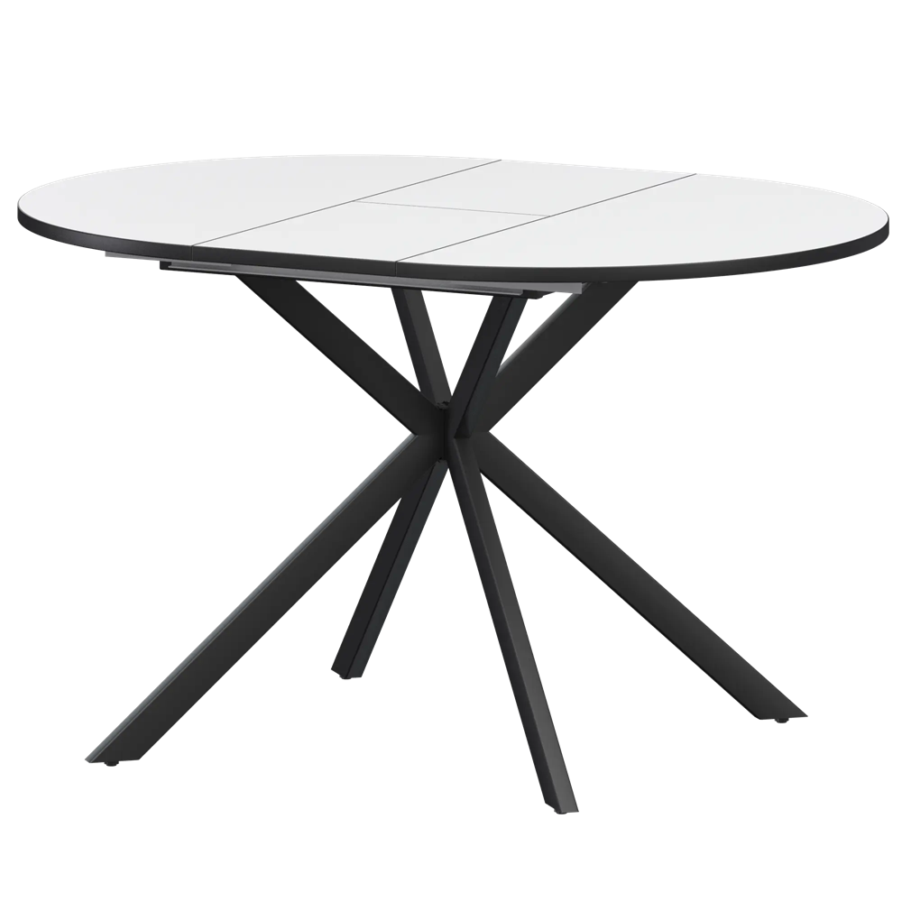 Стол раздвижной Грань Обеденные столы в пластике Грань 900+300 (Н-3784) Супер Белый/Черный муар 900x900x750 Ширина 900мм +300мм вставка